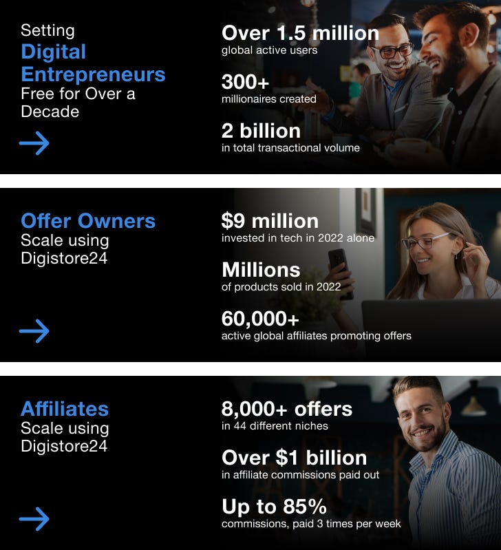 Unlike a traditional affiliate platform or network, Digistore24 provides a true all-in-one platform that digital entrepreneurs can rely on to build & scale their business online. Through Digistore24's full ecosystem of tools and dedicated support, their goal is to help vendors & affiliates alike to achieve “More Sales, Less Work”.